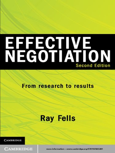 Effective Negotiation is a task-oriented and practical resource that provides the skills needed to reach a good agreement. It examines how negotiations work and covers key issues such as trust, power and information exchange. Ray Fells draws on his extensive teaching and research experience to present useful, applicable strategies and advice on managing workplace and business negotiations. Fully revised and updated, this comprehensive second edition boasts new features including chapter summaries, fundamental skills tips and a complete Negotiator's Toolkit. It incorporates up-to-date case studies, new material on mediation and on multiparty negotiations and a new concluding chapter on being an effective negotiator. The companion website, at www.cambridge.edu.au/academic/effective, includes a comprehensive set of lecturer resources, including PowerPoint summaries, negotiation role plays and expanded case material. Effective Negotiation remains an essential resource for students and professionals in the fields of business and management, law, human resource management and employment relations.From reader reviews: